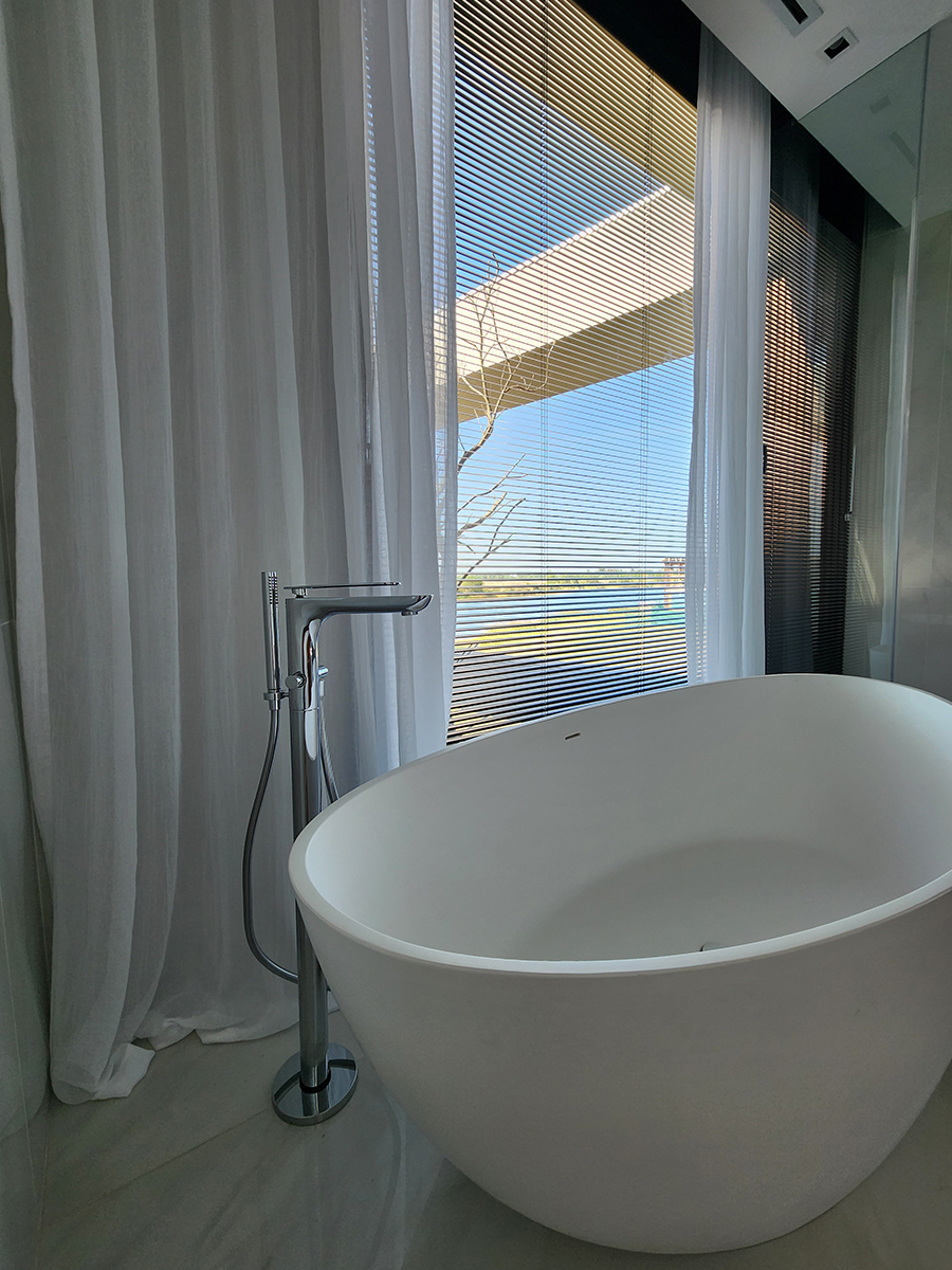 Gasa de Poliéster, Lino y Viscosa y Roller Screen Lumina Blanco 5%