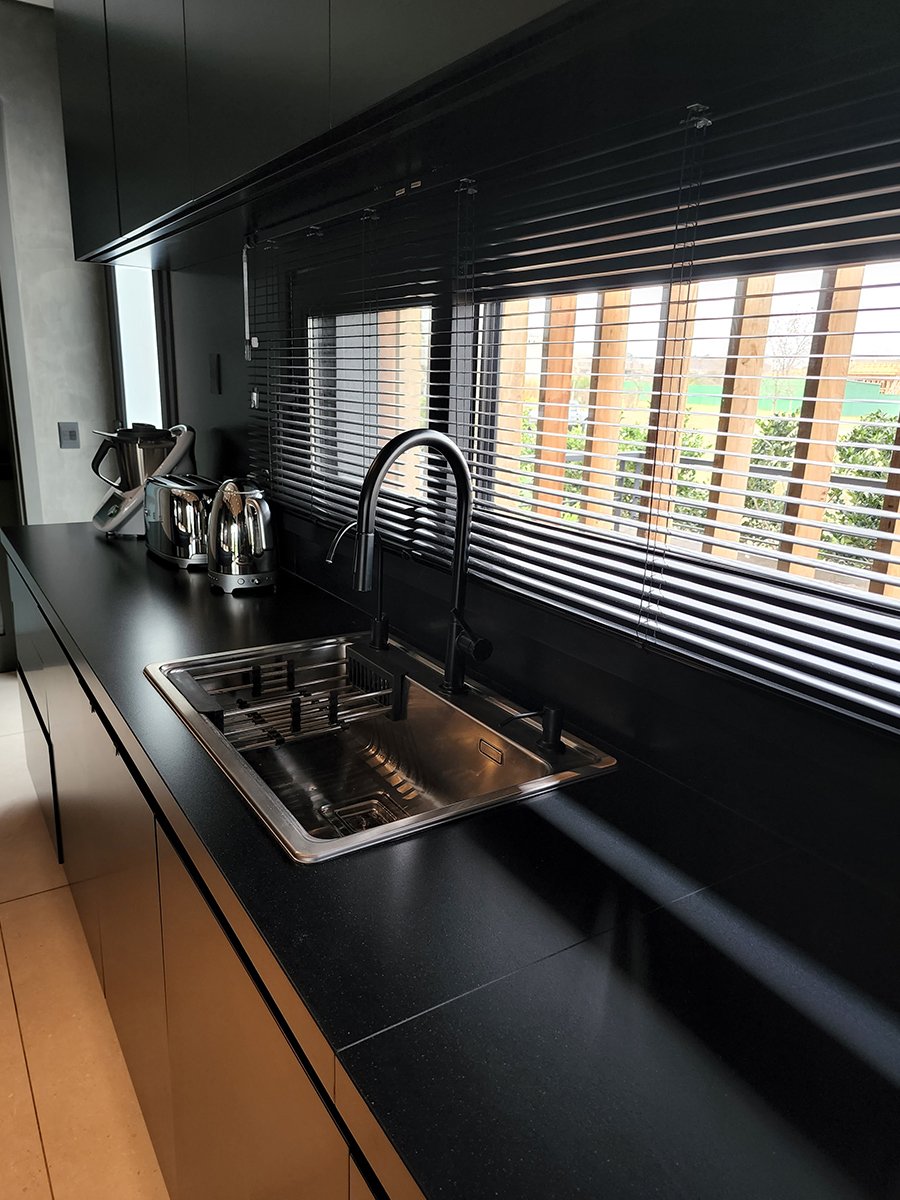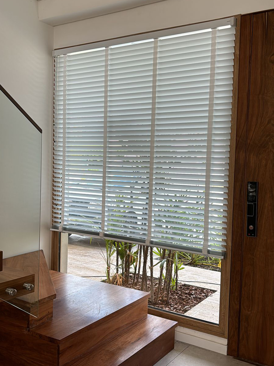 Gasa Tusor y Horizontales de Madera Negra 50 mm con Cinta a tono.
