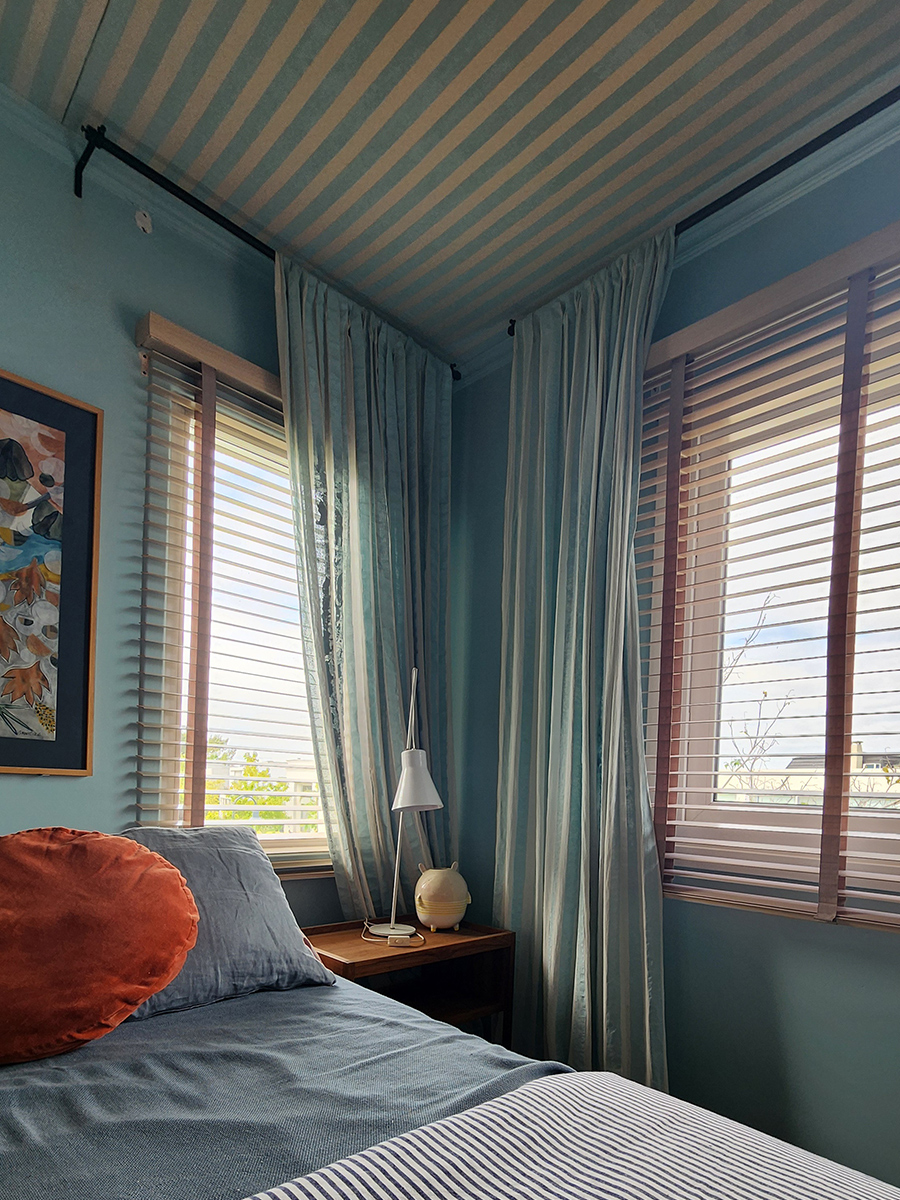 Liviano Azul y Black Out de Pana Algodón, Rieles Motorizados