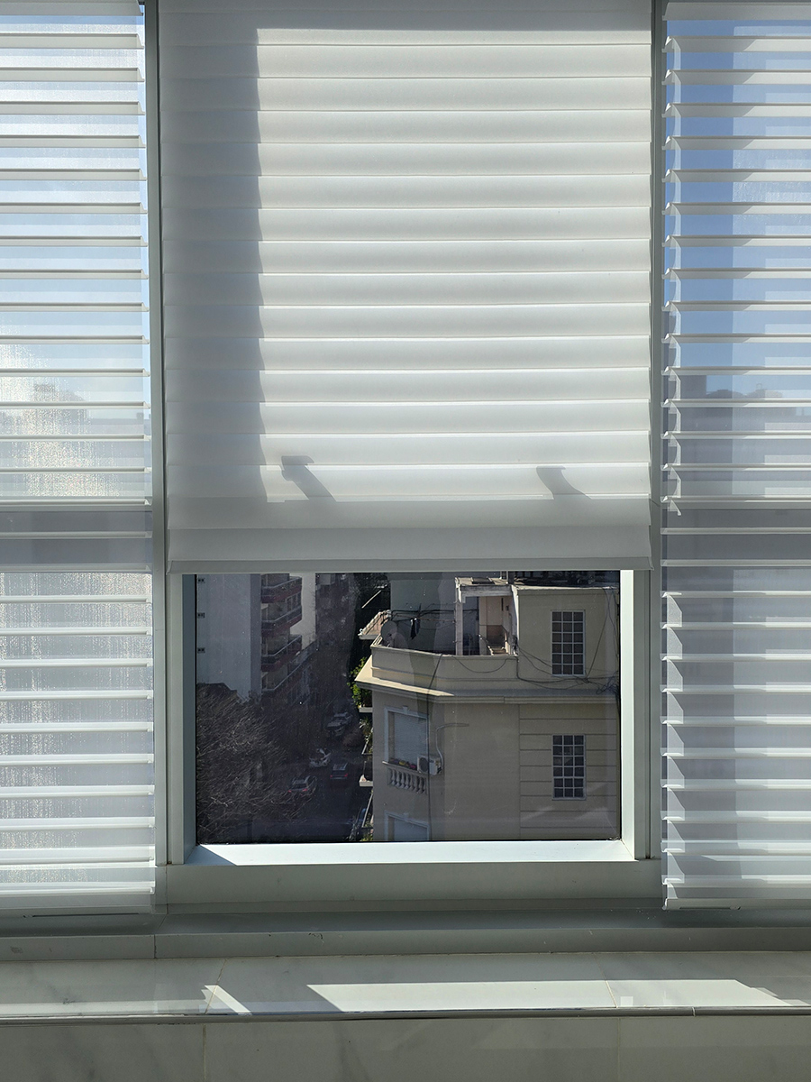 Gasa de Poliéster, Lino y Viscosa y Roller Screen Lumina Blanco 5%